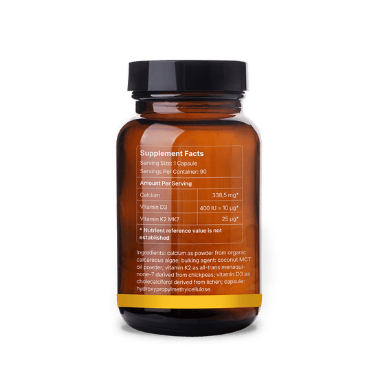 338,5 mg wapnia i 400 IU D3 + 25 mcg K2 w 1 kapsułce